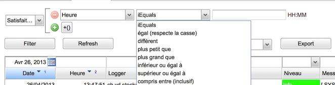 In SmartGWT 4.0d (4.0-d20130427), on the FilterBuilder for a ListGrid, the combo box for date or time field type criteria (ok pour string), 'equals' operator is displayed as ''iEquals". This occurs only when the field does NOT appear in the first position (1st column). If it appears in the first position, then the operation 'equals' does not appear, only 'iEquals' (and correctly translated).
