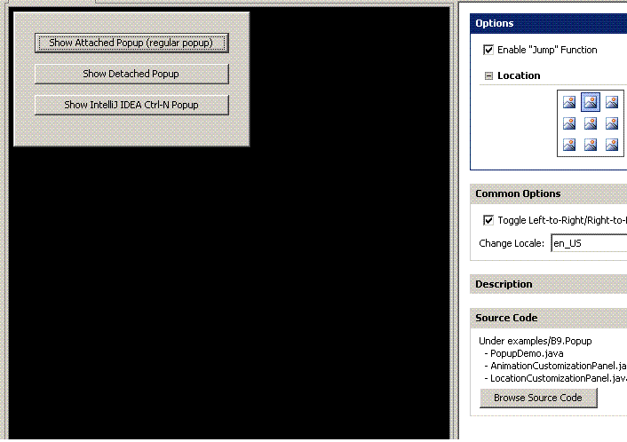 I want to create a component , where on the click of the button in that component , I get a panel ( NOT a modal panel) attached to that component , such that the top,left of the panel coincides with the bottom,left of the component . The panel should appear on top of any other component present , and it should NOT disable other components like a modal window does .