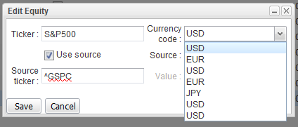 And you can see that the list of currencies actually coming up in the DynamicForm's field is the sequence of the currencies listed by the main data source in the list grid when the list grid fetches the assets from the server.