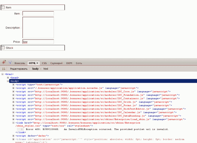 <HTML> <HEAD><TITLE> Test </TITLE></HEAD> <BODY> <script type="text/javascript"> var isomorphicDir = "application/sc/"; /script> <script language='javascript' src='/.bonuses/application/application.nocache.js'></script> </BODY></HTML>