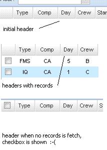 The codes should disable the "check all" header, the problem is, each time an empty record is fetched, the checkbox appears on the header. Is this a bug or is there any way to circumvent this behaviour ?