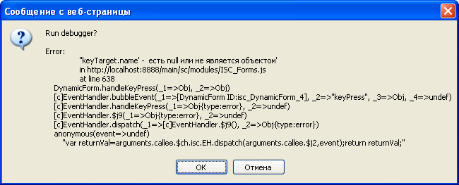 if in DynamicForm focus is situated on the field that doesnt handle Del key (in grid without editable fields, to be precise), on Del key pressed IE shows an error dialog (please see attachment - sorry for Russian, but it is "is null or not an object"). Ive tried to get that key press in form with addItemKeyPressHandler(), but it doesnt work
