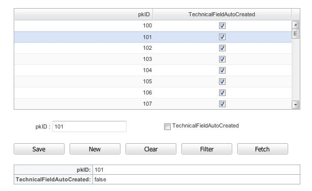 - pkid 100: Databasefields is TRUE
