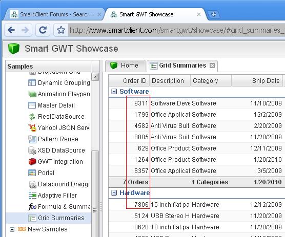 http://www.smartclient.com/smartgwt/showcase/#grid_summaries_featured_category