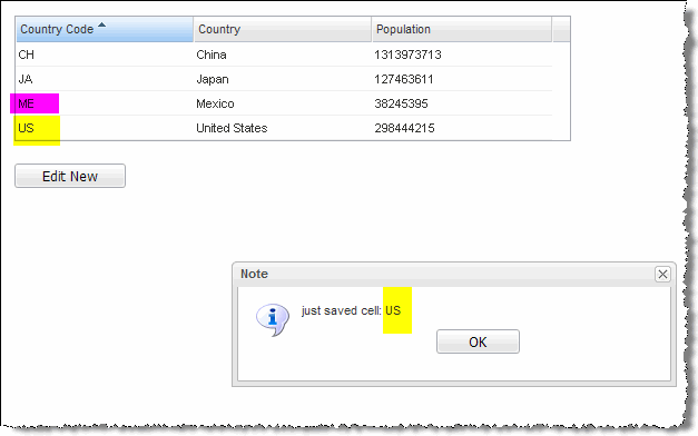 First I'd like to say SmartGWT is a great open source product! Thanks. I'm using SmartGWT 2.1 version. I ran into an issue with ListGrid CellSavedEvent: If I sort the table, then do Edit New, CellSavedEvent event.getRecord() doesn't return the correct record, it always returns the record on the last row, but the newly added row is not the last row because of the sort. Because of this issue, I'm not able to operate on the newly added row (set certain flags to distinguish the new row from other existing rows, for example). I have simple sample codes to demonstrate this issue. Attached are 3 screenshots of the steps taken to reproduce this issue, and the source codes. Please confirm if this indeed is a bug, and what other ways I can use in the meantime to get hold of the newly added rows (when column sort is present).