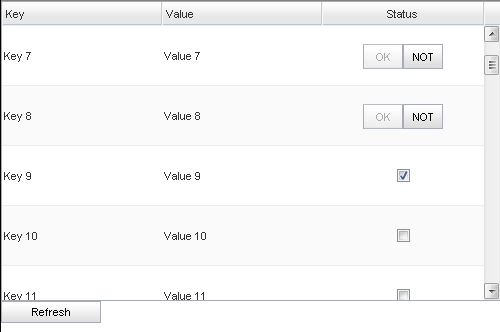 For easily editing a boolean value, we add two buttons (OK/NOT) to the grid by overriding createRecordComponent.