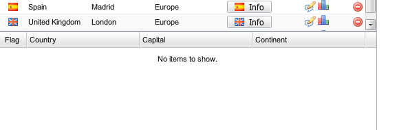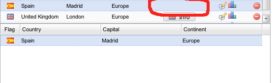 If you copy a record with a GridCellWidgets to another grid the button (in this case) will disappear.