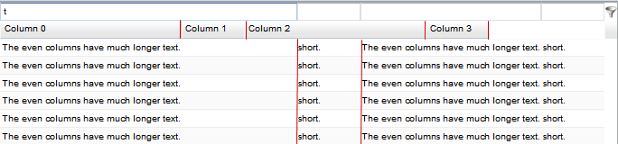 5. Press "enter" key again. This time, the header columns don't line up properly with data columns and filter columns. (image 2)
