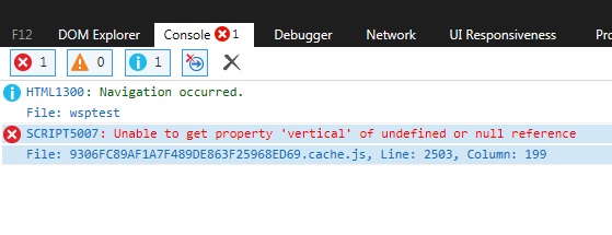 The error in IE console: