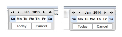 The first time the calendar chooser is opened, the weekdays are shown.