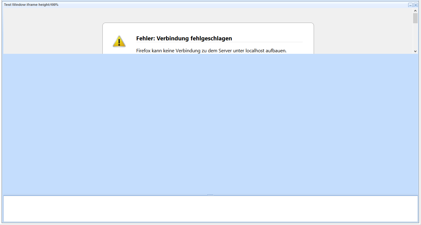 Hi! There is a little sample code for iframe height:100%. (Testing the fix height="555px" works ok but it is not the function what we want). I would like to resize this part of window dynamically using the resize bar so that the child should have height=100%. You can compare the attached screens. What are the right settings to show it in 100 percent size?