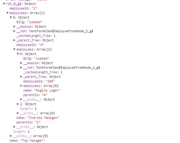 I managed to build my items, and to fill the form fields and the treeGrid with the data retrieved from my form datasource. But when I try to save the form, it fails. It is impossible to get the values of my form through form.getValues(), and any call to this method ends into a stack overflow.