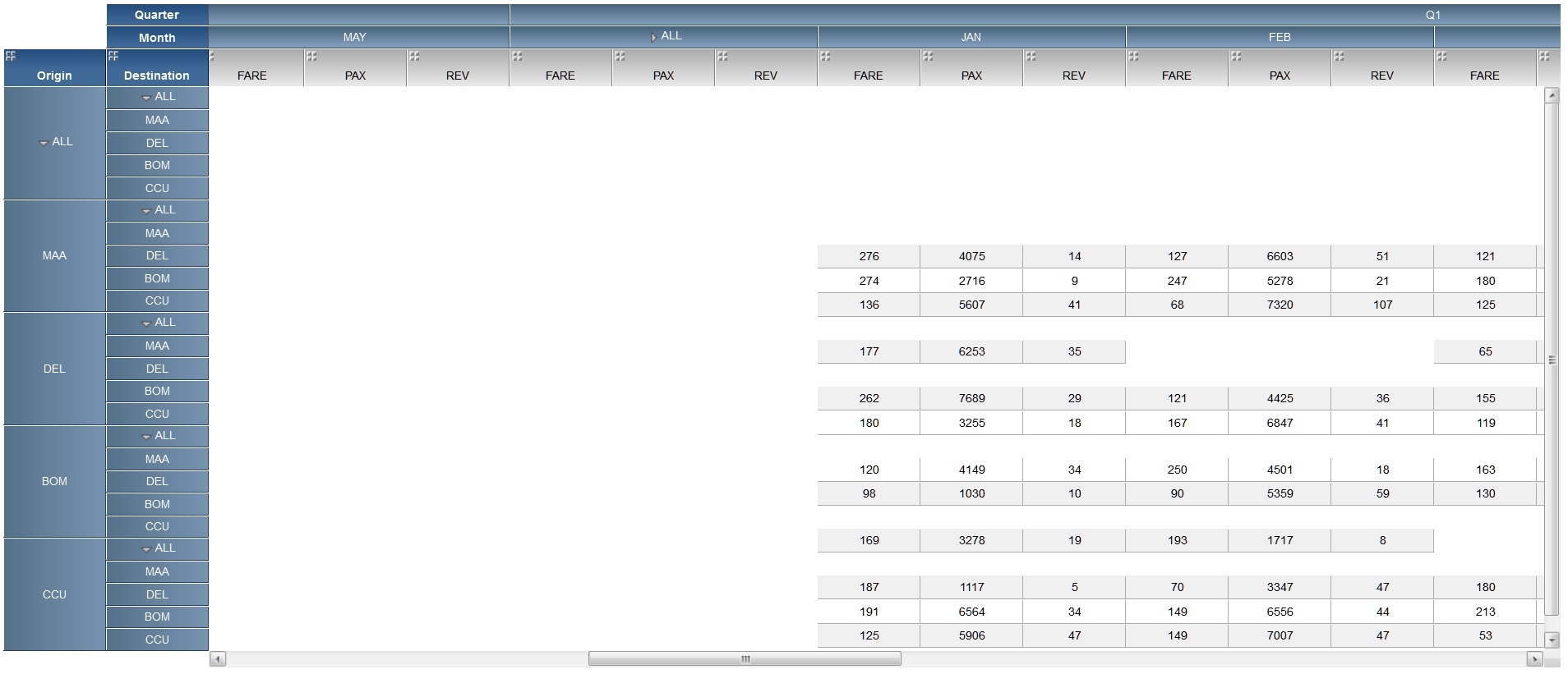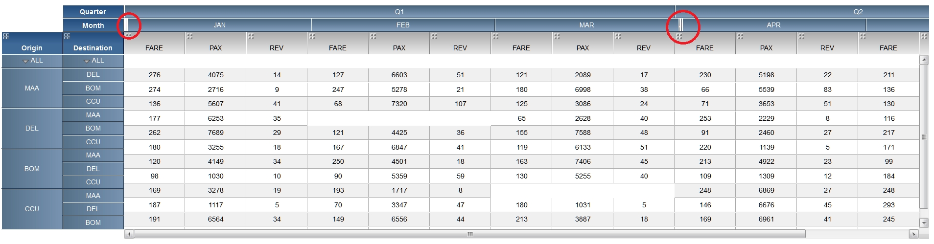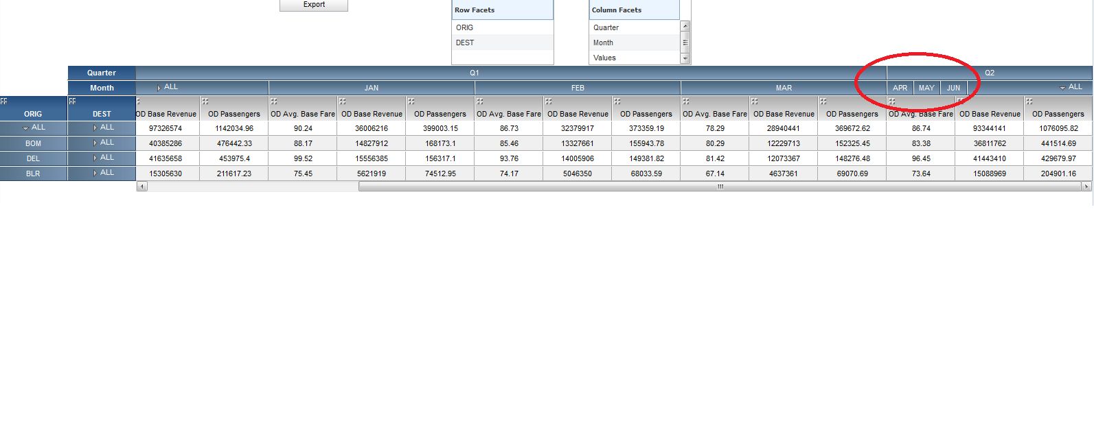 I have 2 facets as Quarter and Month, and for the invalid combinations, the empty row/column isn't fully hidden. The invalid facet titles still appear in the next facets area.