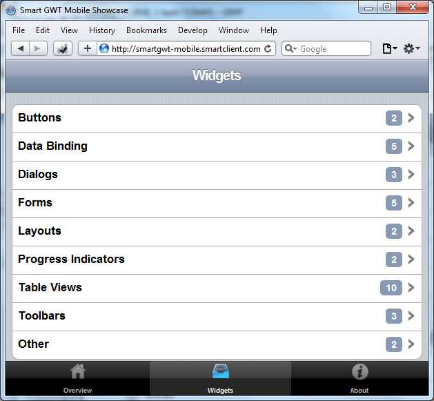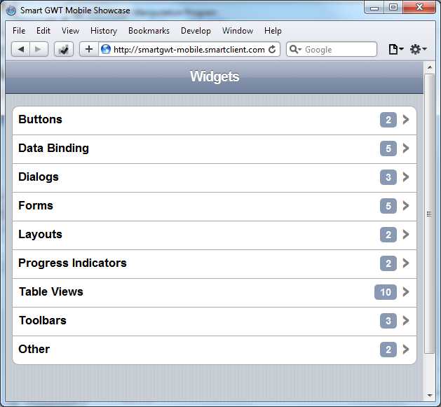 SmartGWT mobile.beta, showcase (the current version)