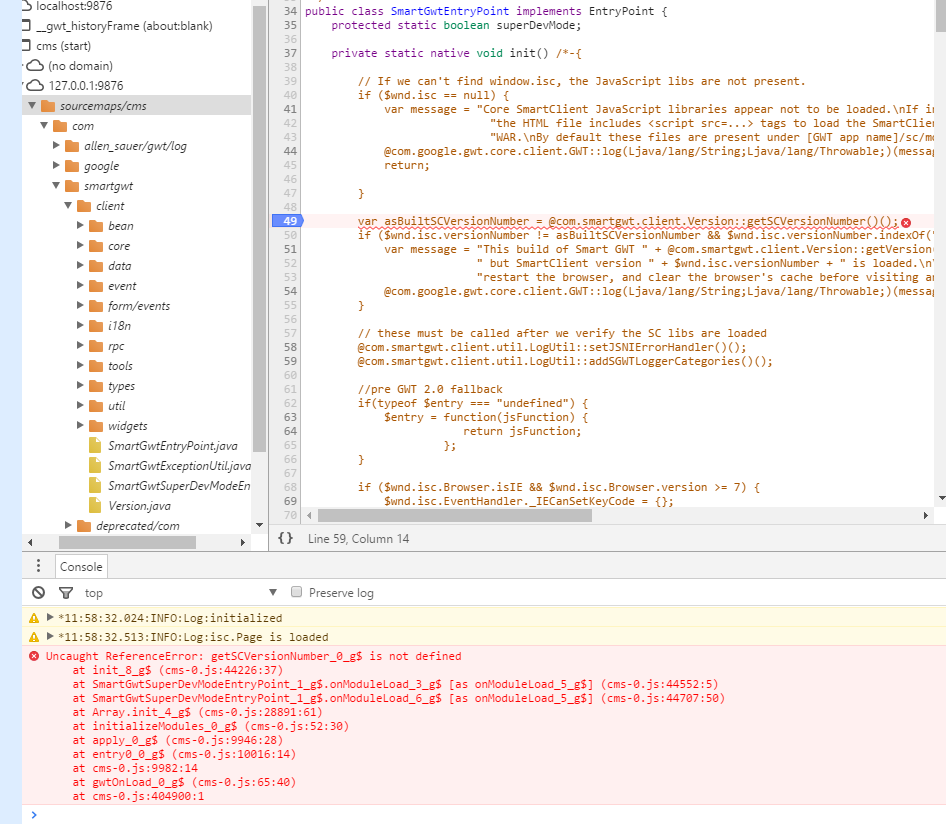 After a full project rebuild (gwt-unitCache deleted, browsercache deleted, full clean build) we faced with a strance exception constellation after starting SuperDevMode.