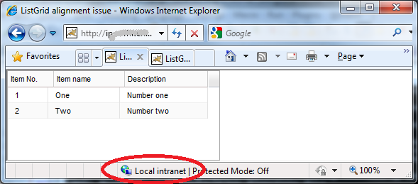 - LocalIntranet.png – Shows column cells don’t match-up with headers when connecting to a Local Intranet site.