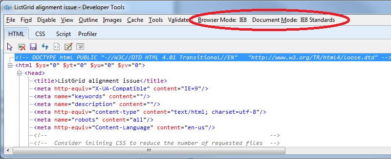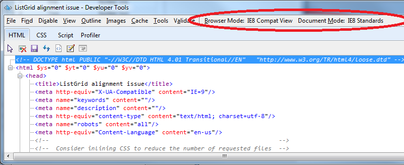 IE8 ListGrid alignment problem when using Compatibility View. DOCTYPE: loose.dtd