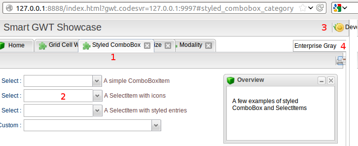 firstly, thank you very much for help. I've tried the latest builds of 3.1p and 4.0d. The most problems disapeared. But in development mode (only) e.g. comboboxes are often displayed as in "smartgwt-local.png" (see above) and tabs as in "tabs-local.png" while these problems are absent, if app runs in server.