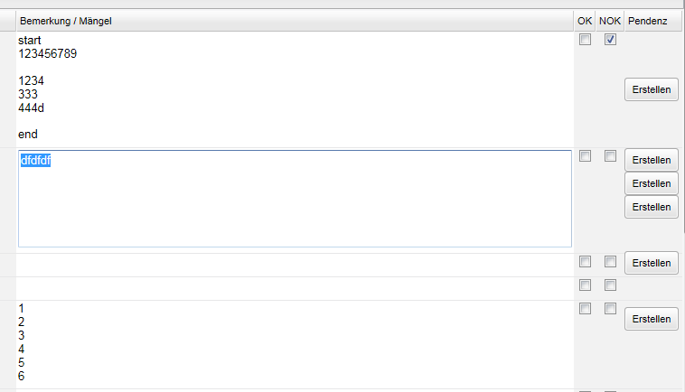 Additionlly if I click into the textfield (see attachment-2), I use a AutoFitTextAreaItem as edit-item, which is higher than the text was before the click. The rows below are shifted down (including the checkboxes), but the buttons stay fix (which is wrong).