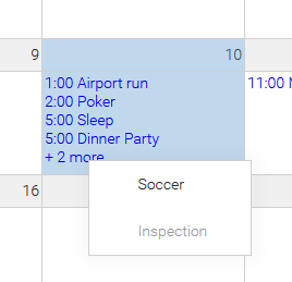Also, it is not possible to see the details for the disabled "Inspection" event in month view (either via click or via hover).