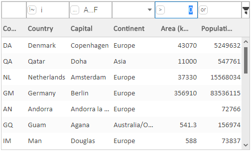 3. Add the ">0" filter expression in the Area column.
