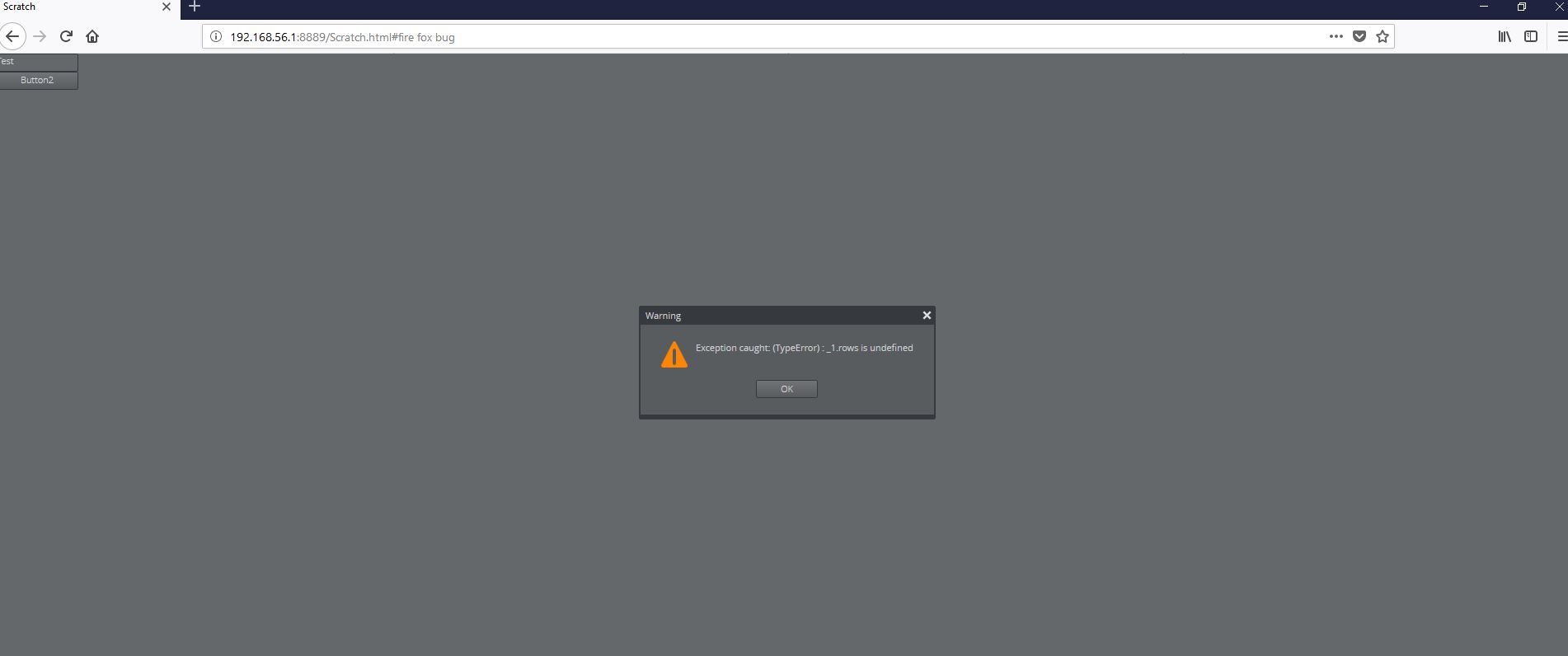 We are using smartgwt and smartclient version 12.0.p. The following code snippet generates an exception in firefox while pressing button2 that will disble button1