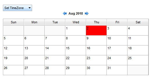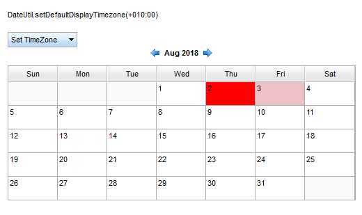 The Calendar_TZ screenshot shows that calendar after setting the display time zone to +10:00. It selects the correct current date (Aug 3), however, the date for today (Aug 2) is wrong.