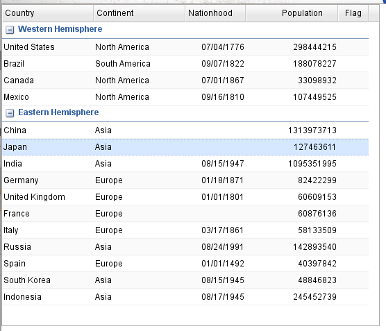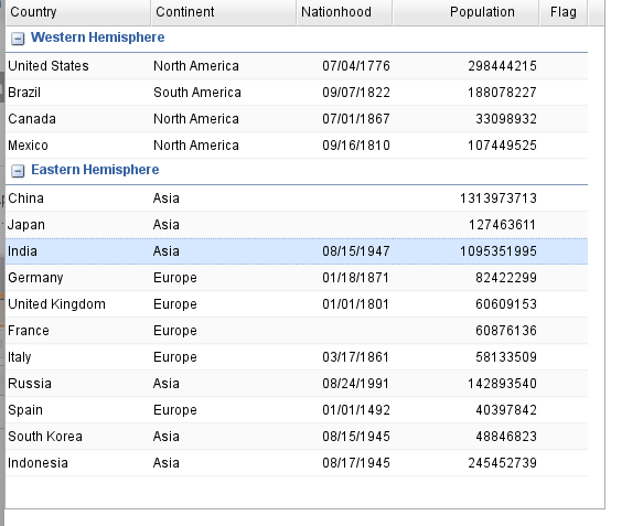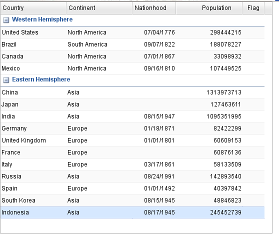 I am using a ListGrid, which is grouped by one of the fields. (I am using the showcase example http://www.smartclient.com/smartgwt/showcase/#grid_grouping_modes, which is grouped by hemisphere).