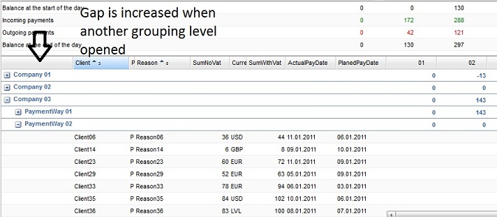 In other words, can the expanding and initial state of grouped ListGrid with setShowGroupSummaryInHeader(true) be the same as setShowGroupSummaryInHeader(false) - by default ? The initial gap, when no grouped levels are opened is also not good ...