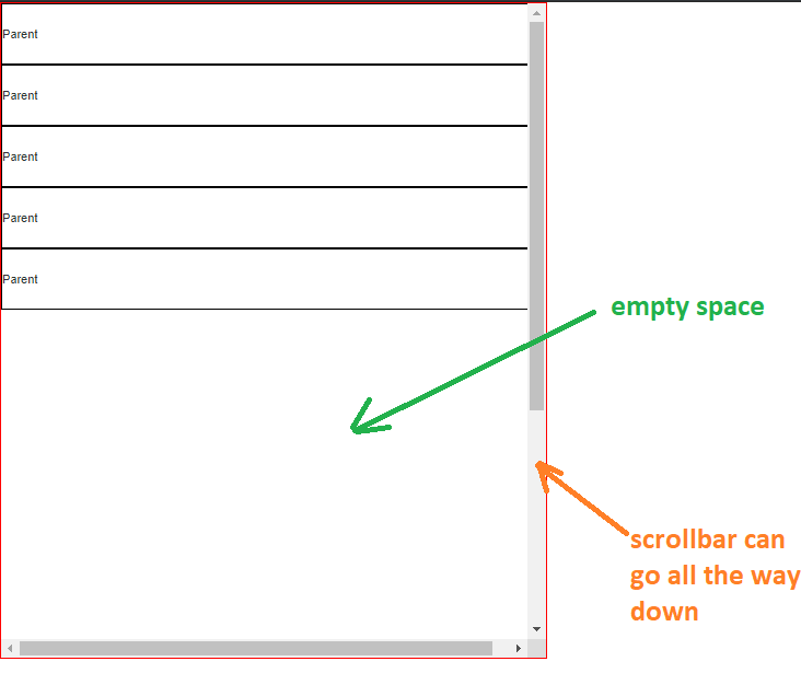 The children container is hidden but the space is still 'occupied' by the hidden container as if it wasn't hidden (this doesn't necessarilly have to be the last node but any node with enough children to make the childrenContainer high enough).