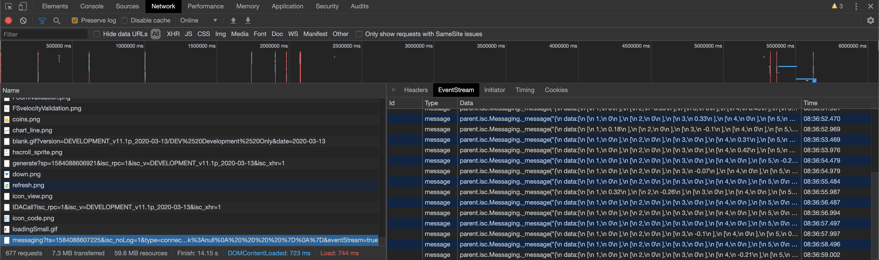 In the Chrome DevTools, find a URL that starts with: messaging?ts=... click on that and you should see a panel on the right. Assuming you're also using EventSource (that should be the default for your version), click on the EventSource tab over on the right and you should see the data arriving from the server.