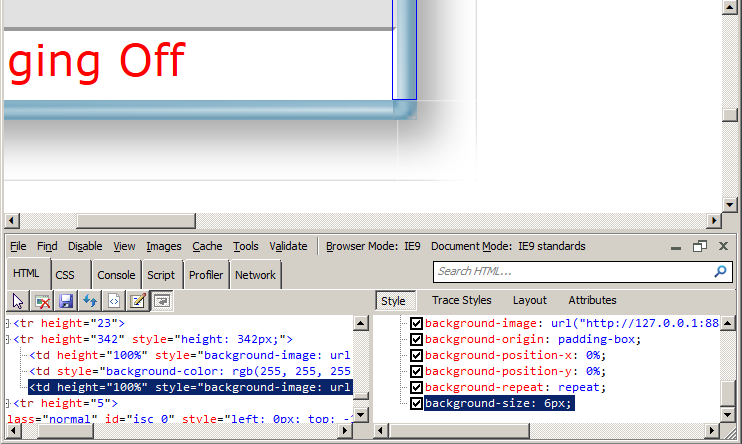 I use the old Enterprise theme with slight customization. In IE9 left and right borders have inlined size "auto" - see attached picture "border_size_auto".