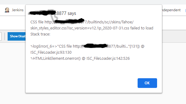 One can see a path error in the image. The path it is trying to access is "bultinds/sc//skins/Tahoe/skin_styles_editor.css" where it should be ( ? )