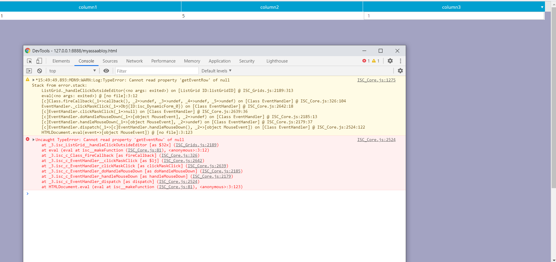 I am getting console error whenever i edit the list grid record and just after that click on the page scroll bar. If i click on rest of the page after record edit then it works fine.