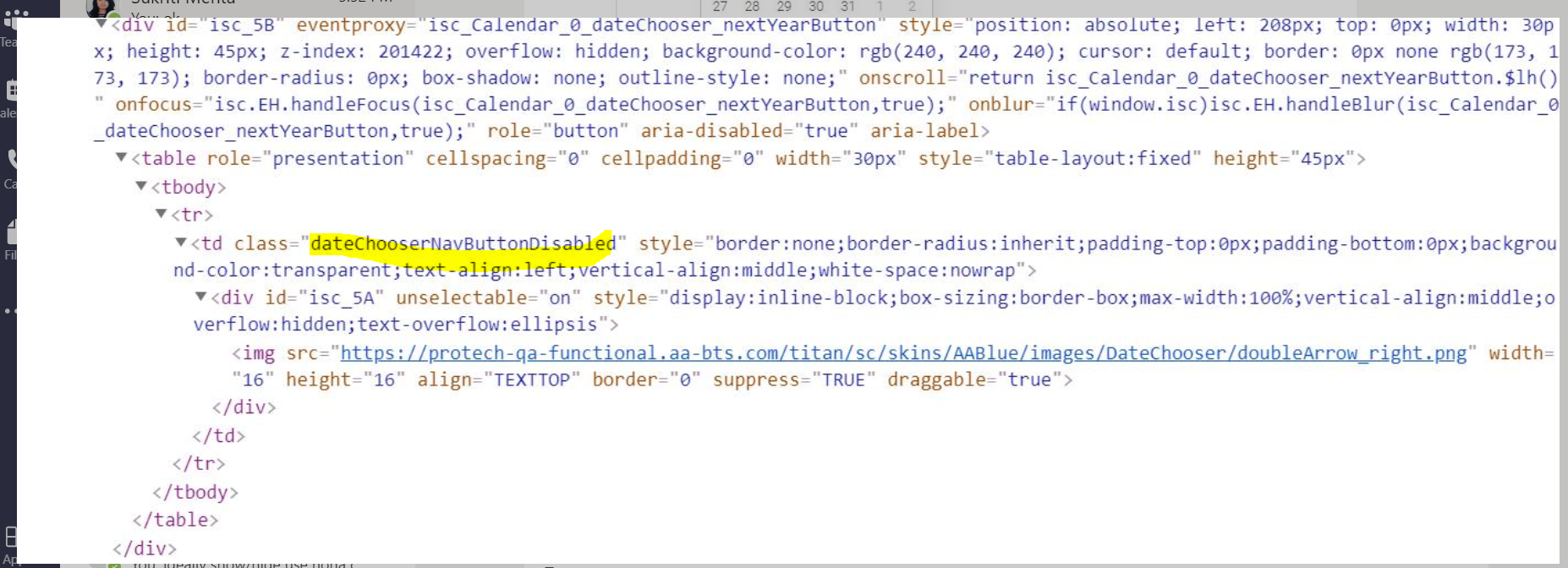 While inspecting the element, below is the element details for nextMonth we can check that class is dateChooserNavButtonDisabled
