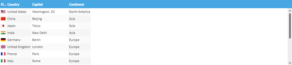 - Result: "Country" column will be resized to be very wide