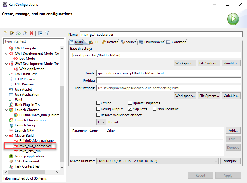 With this configuration, I can access Developer Mode for debugging the code and it works correctly.