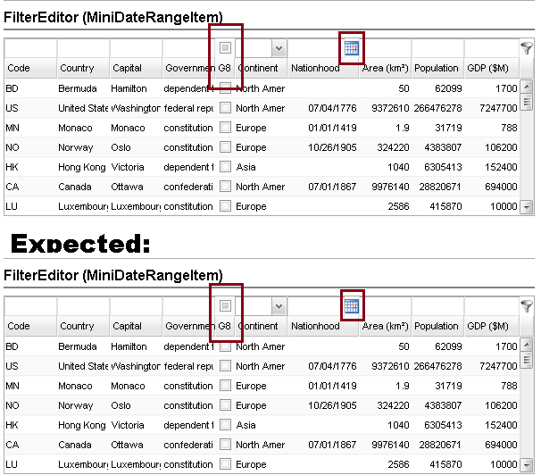The ListGrid filter row seems to be missing the horizontal divider with the header row in the following cases: