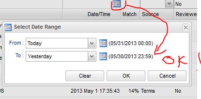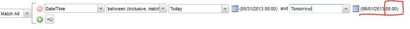 I wan to filter the grid using filters above the column headers. I choose Date/Time field and set value range from (05/29/2013 00:00) Today to (05/30/2013 23:59) Tomorrow