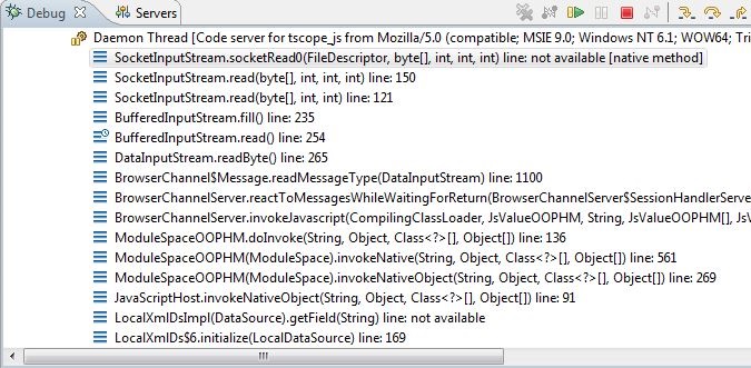 See the attached picture for a stack trace. It hangs on a socket read, although it should not do any network calls. This problem only appears with SmartGWT 4.0. It did not appear with SmartGWT 3.1. Please help.