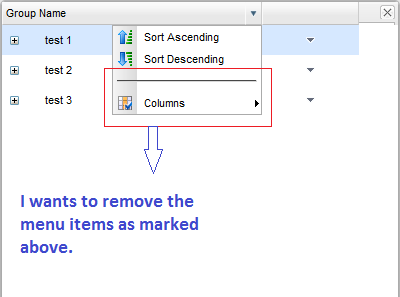We don't want to show the "Separator" and "Columns" menu items in Menu of the Tree Grid Header Context Menu.