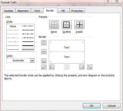 I'm a Smart GWT 3.1 Power Edition user. I have a question regarding ListGrid. Is it possible to format cells similar to what Excel allows in the Border tab of the Format Cells dialog? If so, can you point me in the direction of how this is done? See attached image for the Excel functionality I'm talking about.