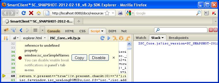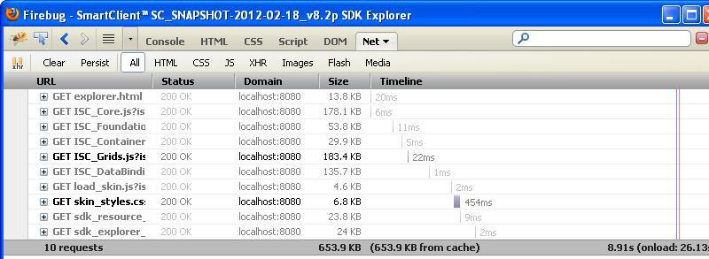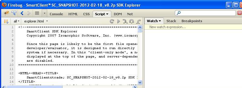 For another problem I upgraded my version. I downloaded and copied SmartClient_SC_SNAPSHOT-2012-02-18_v82p over the smartClientSDK folders. I use Mozilla Firefox 3.6.18 with Firebug using Windows XP Pro 32 bit.