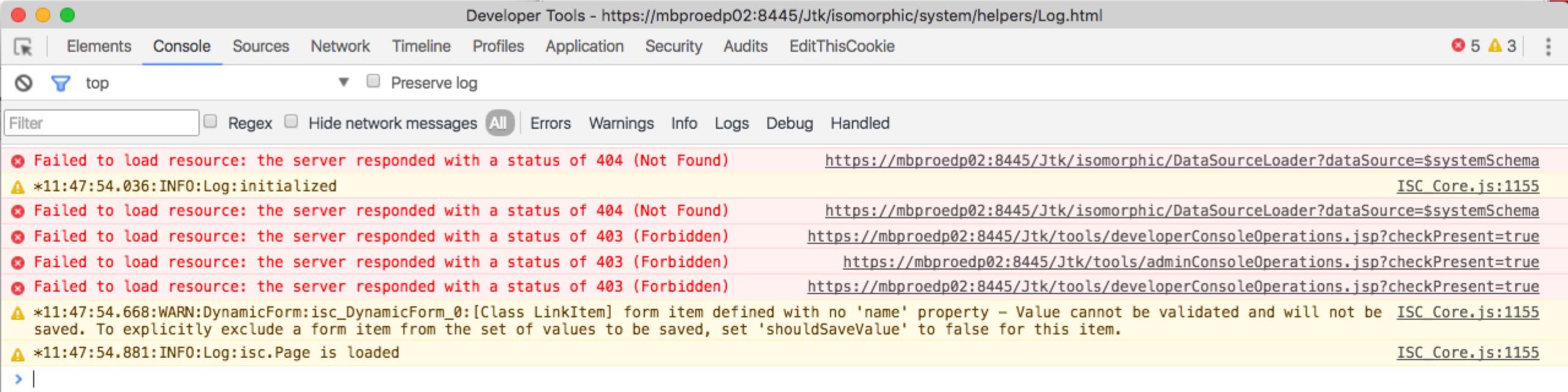 - open SmartClient dev console using the bookmark method (javascript:isc.showConsole())