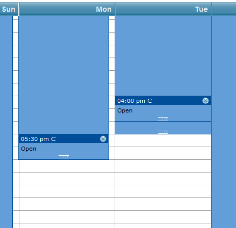 In the second image, Calendar_overlap_8_3d(1).png, the 4pm event on Tue has been dragged to be within the time frame of the other event. The overlap effect also does not work here.