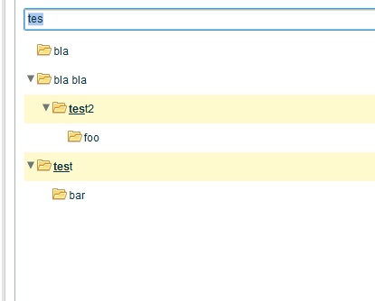 I want to implement a search filter (such a filter that instead of filtering items it highlights the matched items) - see attached pic.