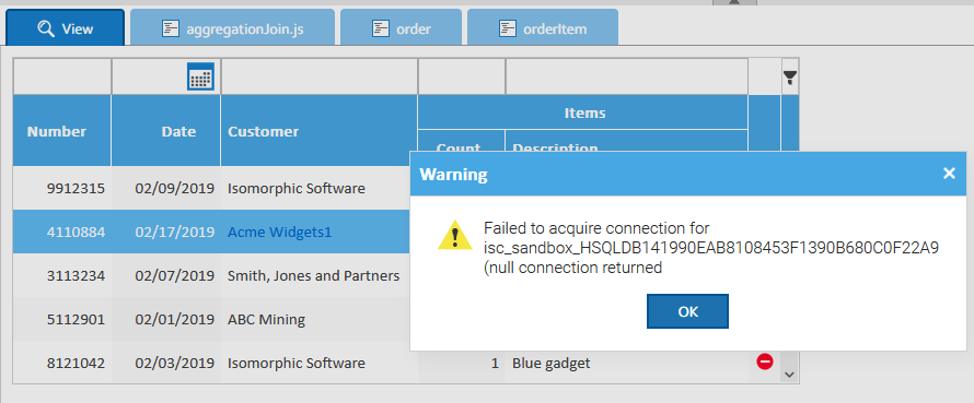 You will see that removing records is working, but updating a customer is not. The connection hangs and later edits also hang. I'm not sure whats going wrong, but assume some DB lock issue.