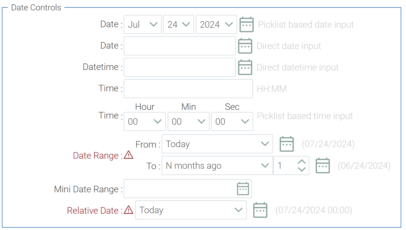 Also, how would one build a server validator here? RelativeDateItem and MiniDateRangeItem are about filtering, not data entry.