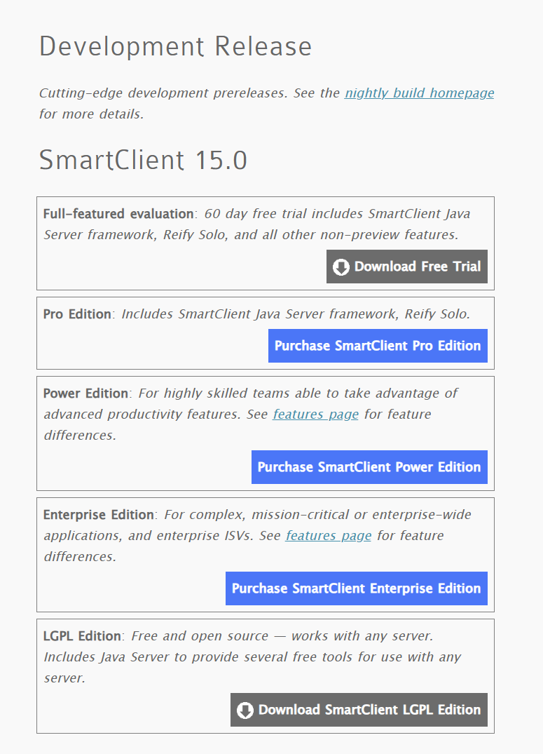 We are using SmartClient 12.1 Power Edition and are planning to upgrade to SmartClient 14.1 since we want to embed it with a React component. I downloaded the trial version of SmartClient 14.1 pre-release last week, but I do not see it on your website. You have released SmartClient 15.0. Which one can we use, and later we will buy SmartClient 15.0?