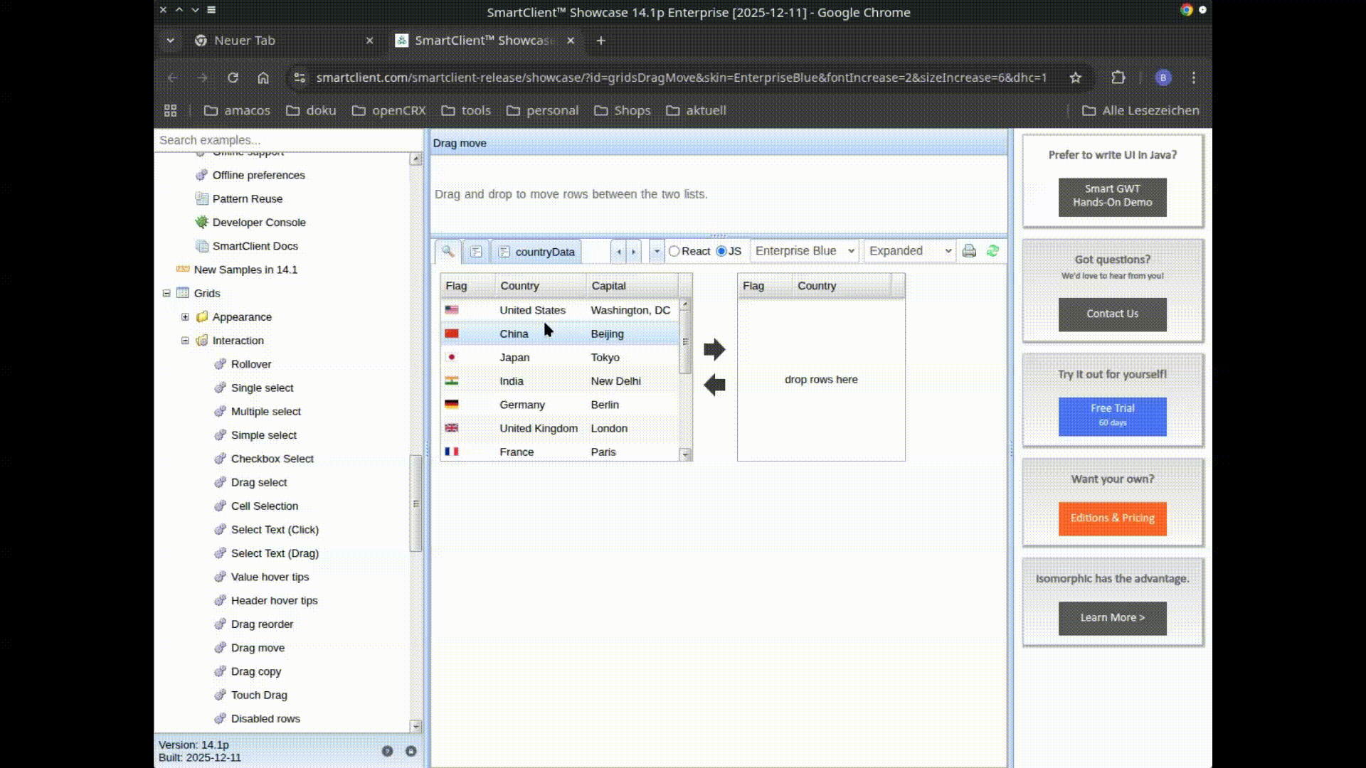 If I use the "Drag reorder" example and click in the "China"